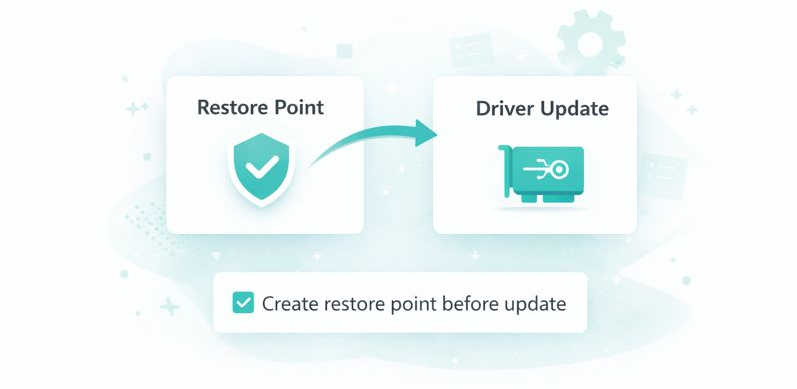 Create a system restore point before installing selected driver updates.
